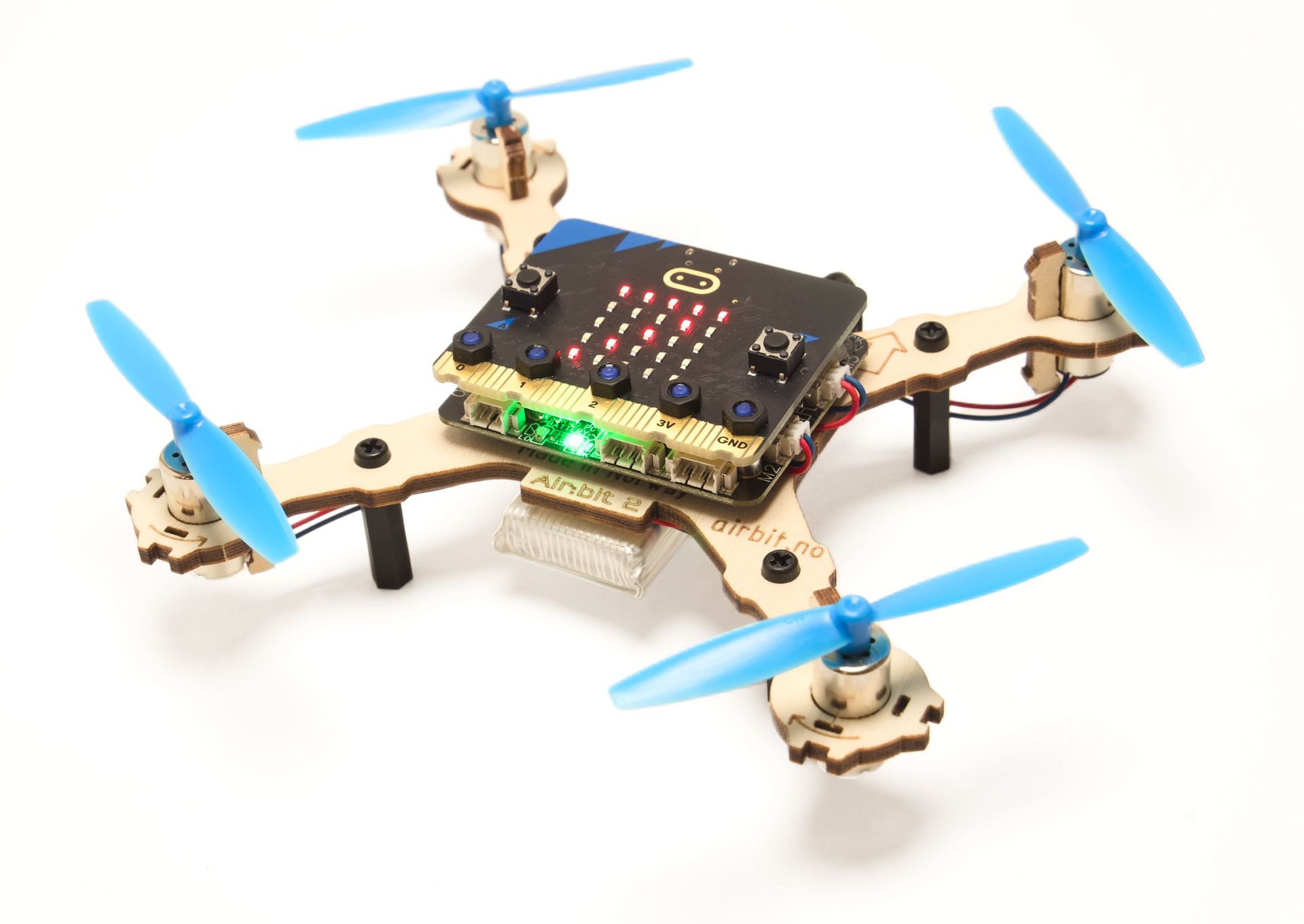 - Airbit 2: Programmerbar med micro:bit. Lær enkel koding. Kan utvides med laserkutting eller 3D-printing.