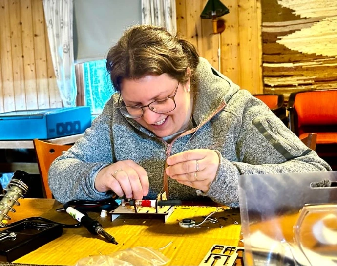 En sjelden mulighet til å oppleve ekte industriell PCB-montering. Samme prosess som brukes til å produsere en mobiltelefon. Deltakerne går hjem med et fungerende instrument, og lærer hvordan SMD-lodding fungerer.