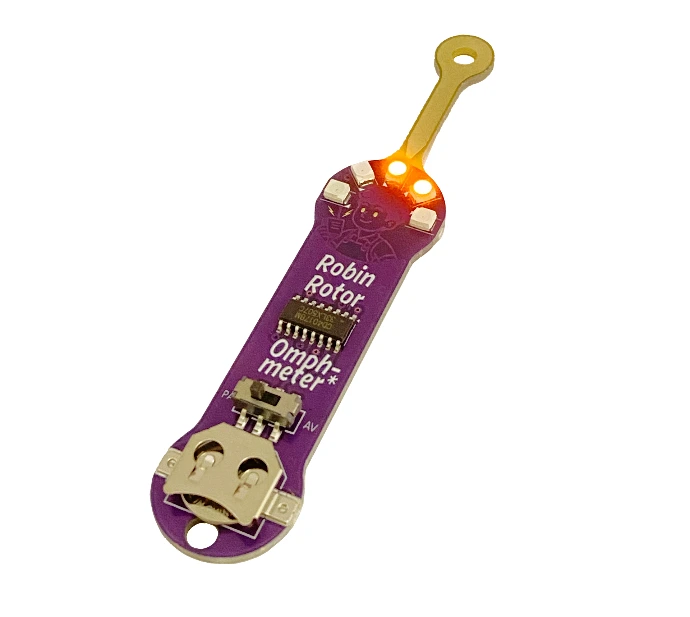EMF står for elektromagnetisk felt. Deltakerne monterer en Robin Rotor-designet PCB-detektor med SMD-teknikk (overflatemontert): loddemasse og komponenter plasseres på et kretskort som deretter varmes på en reflow-plate som binder alt sammen. Det ferdige instrumentet blinker når det holdes nær ledninger, ladere eller apparater som inneholderlager vekselspenning.